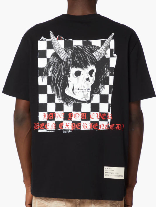 AMIRI X WES LANG CHECKER SKULL TEE BLACK