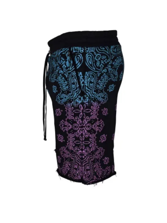 AMIRI BANDANA BLEACH SHORTS PURPLE / YELLOW