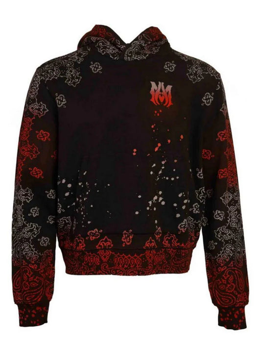 AMIRI BANDANA BLEACH HOODIE RED / GREY