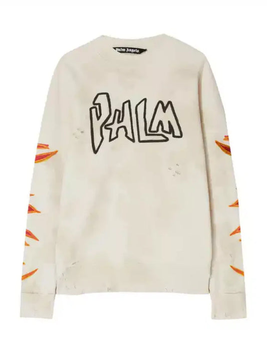 PALM ANGELS GRAFFITI FLAMES SWEATER BEIGE