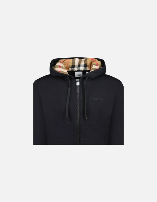 Burberry 'hove' check hood embroidery logo hoodie zip sweatshirt black